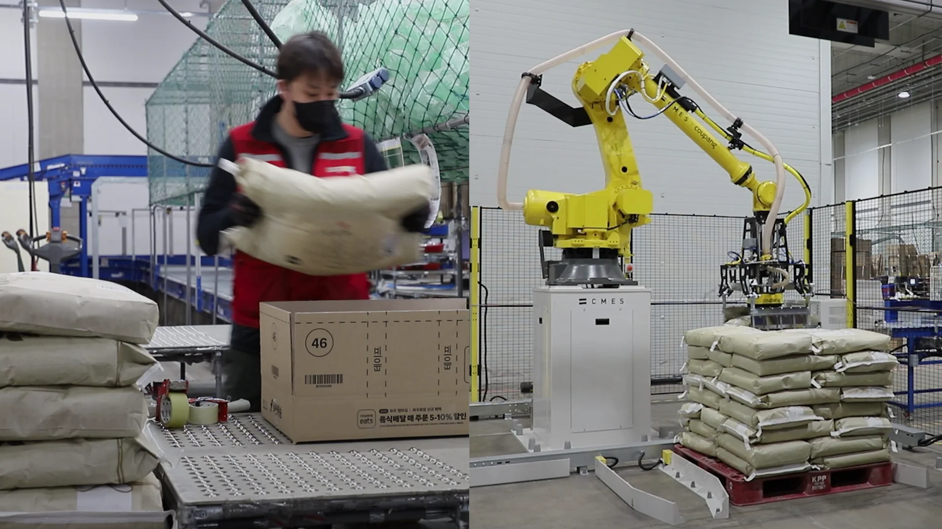쿠팡은 ‘22년부터 씨메스의 랜덤 박스 디팔레타이저 설비를 도입하여 운영해오고 있으며, 이를 통해 기존 작업자들의 업무 효율 향상과 환경 개선, 인건비 절감을 달성했습니다. 해당 물류 센터에서 이미 함께 성공을 경험한 팀이 그 다음 로봇 자동화 프로젝트로 랜덤 포대 디팔레타이징 설비 도입을 추진했고 씨메스가 전체 솔루션을 맡았습니다.