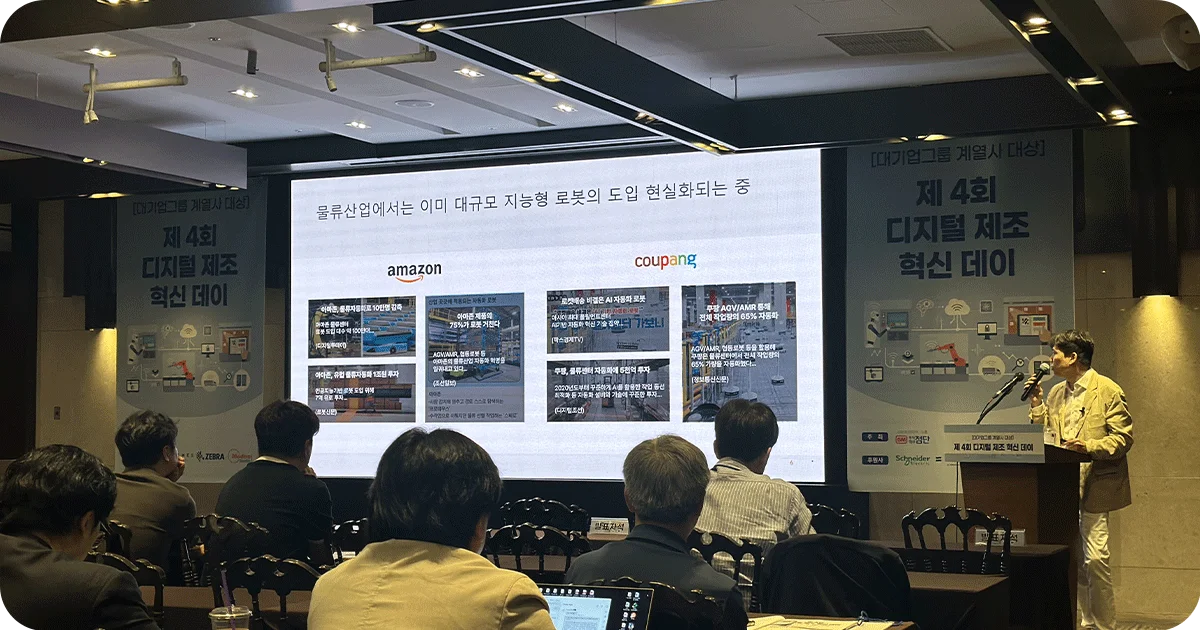 이번 행사에서 씨메스는 ‘움직이는 AI가 바꾸는 물류 및 제조 산업 현장’을 주제로 세션을 진행하며, 실제 산업 현장에 적용된 AI 로봇 자동화 사례를 소개했습니다.