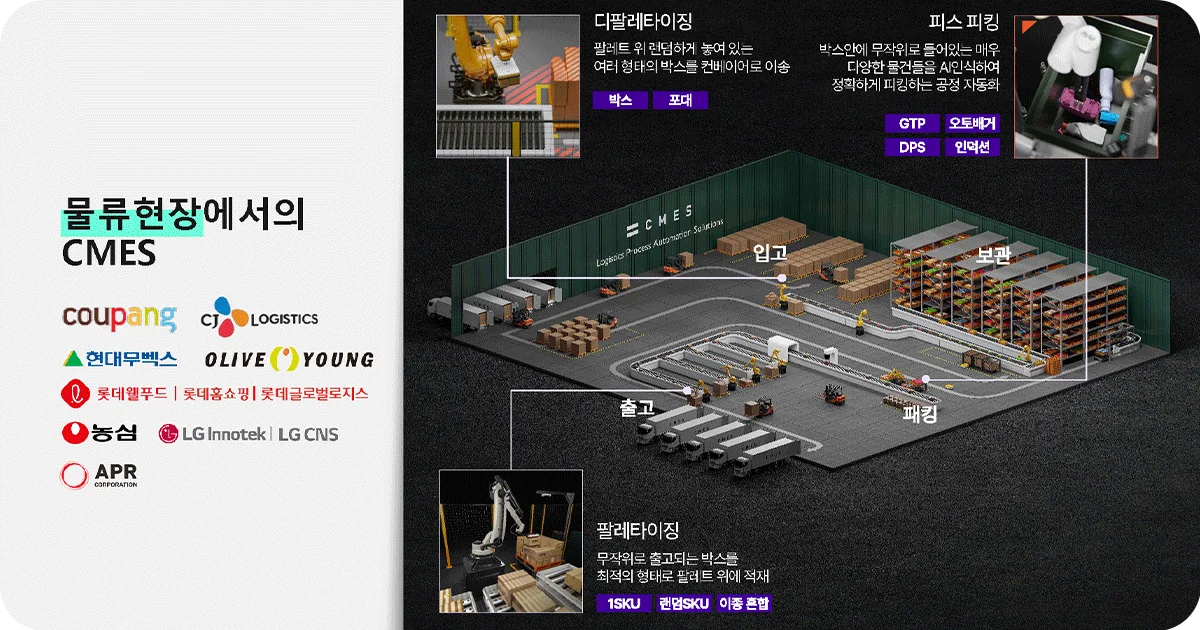 물류 현장에서는 입고부터 포장, 출고까지 모든 단계에 씨메스의 지능형 솔루션이 적용되고 있습니다.